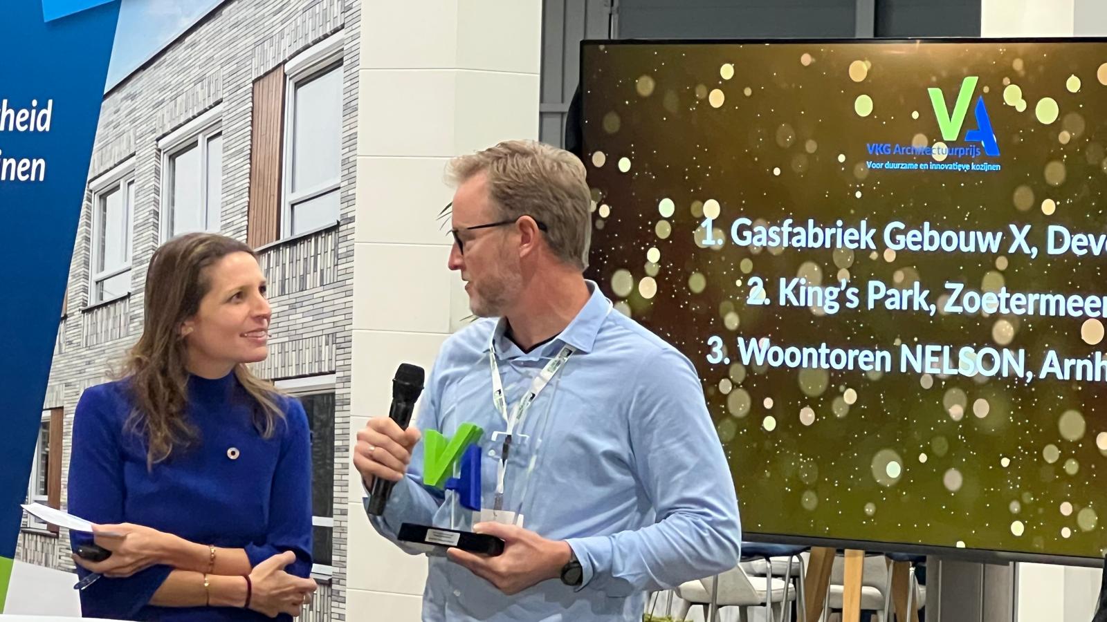 De uitreiking vond plaats tijdens de klimaattop in de Jaarbeurs Utrecht, waar duurzaamheid en innovatie centraal stonden. Dit zijn precies de waarden waar ook de VKG Architectuurprijs voor staat. De prijzen werden uitgereikt door de juryleden Karin Dorrepaal (DOOR Architecten), Merijn de Jong (SOME Architects) en Albert Zegelaar, directeur VKG. Yvette Watson was de host van de uitreiking.